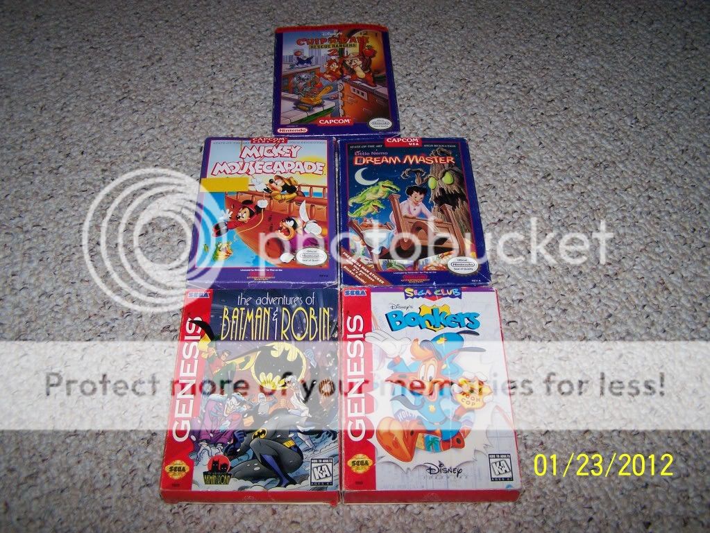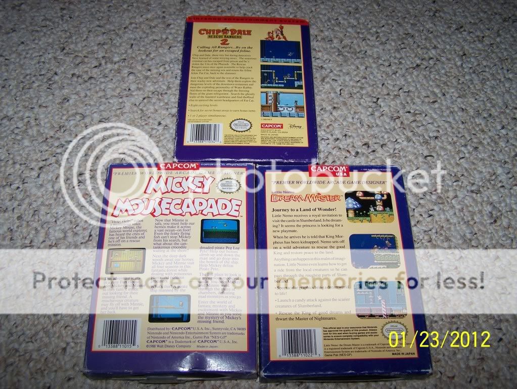 Yesterday I went to a local store here in the Omaha area. My gf has never been there before so I said what the hey since you live down by there I'll take you. Well we got there we looked around for a while and did my usual pattern go to the games! Well I saw a few Boxed NES titles just sitting there so I picked them up as well they are minty and complete too! (titles are - Mickey Mousecapade with the Oval Seal (I have just the cart of Round Seal) and Little Nemo (I have one complete in box now and one cartridge). I picked Little Nemo up for $8.00 and Mickey for $5.00. So little to nothing for complete NES Games. But the employee was like "did you see what was in the cabinet?" I was like no but I was here yesterday and didn't see anything. He's like well I just got those you are buying and this in today I was like what - and TOO MY SUPRISE! it was Rescue Rangers 2 - he took it out of the case and he knew the story behind it and well let's just say I made a new friend. He put it on hold for me I was going to pick it up Thursday but I decided I couldn't wait so I went in this morning and GOT it. Well now your probably wondering what the $0.00 means well I traded in a bunch (and I mean a bunch of DVD's and CD's) I got store credit the game was priced at $93.99 but I know the manager pretty well and he decided well I think this price is steep so he changed it to $73.99!!! WTH!! Love this guy haha. Well with my store credit I had plenty for that and some more SO I picked up copies of Bonkers & Adventures of Batman and Robin on Sega Genesis - Batman for $6.99 and Bonkers for $4.99 and well I only spent $5.00 total! So basically I paid for Bonkers only!!!! So no drooling everyone!!! This is my best find yet!!!! Next up hopefully a box for my MINTY Ducktales 2 and Stadium Events!!!