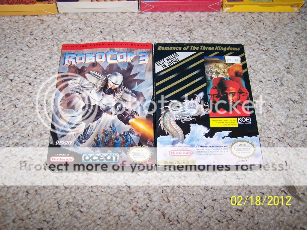 Hello again fellow gamers. Today we got some more goodies in the mail and I went on yet another shopping spree for mostly unliscensed NES games. My total purchase at the store was sadly $262.00 ick but it was worth it! I am just waiting on one more package in the mail my complete copy of Deja Vu. Today I also got two liscenesd NES games Robocop 3 and Romance of the Three Kingdoms both complete in their boxes. My brothers eBay mail order today arrived all complete in box DuckTales 1, Chip and Dale 1 and Fester's Quest. Today I recieved another personal grail Jetson's on NES. So again I do believe this is the year of the Nintendo for our collection. Today my brother also purchased Sin & Punishment on the Wii brand new at K-Mart for a meer $13.00! While Game Stop still sells new for $40.00 and we needed the game because we have the Japanese N64 game Sin & Punishment complete in box in minty condition we purcahsed a long time ago. My brother also recieved in the mail today pretty much brand new Star Trek Judgement Rites Limited Collector's Edition, the VHS is still brand new and the game is limited number to 75,000. This game is in pristine condition! So here are the pictures please comment!!