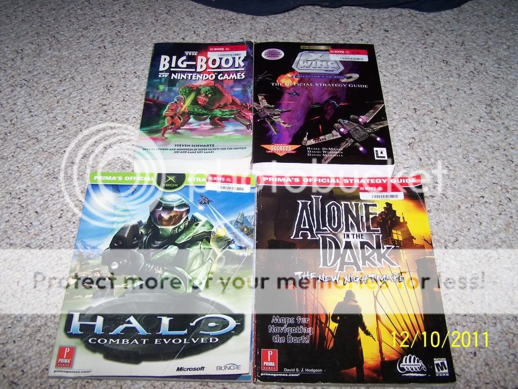 Earlier today my brother went with my parents to Half Price Books in Omaha. He purchased 4 Books/Strategy Guides for $6.99 Each. -The Big Book of Nintendo Games -X-Wing Collector's CD-Rom: The Official Strategy Guide -Halo: Comabt Evolved -XBOX Strategy Guide -Alone in the Dark: The New Nightmare - PSX/PC Prima Version