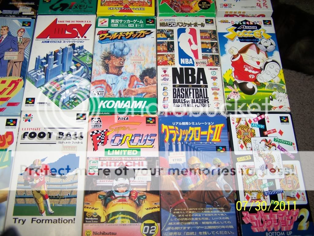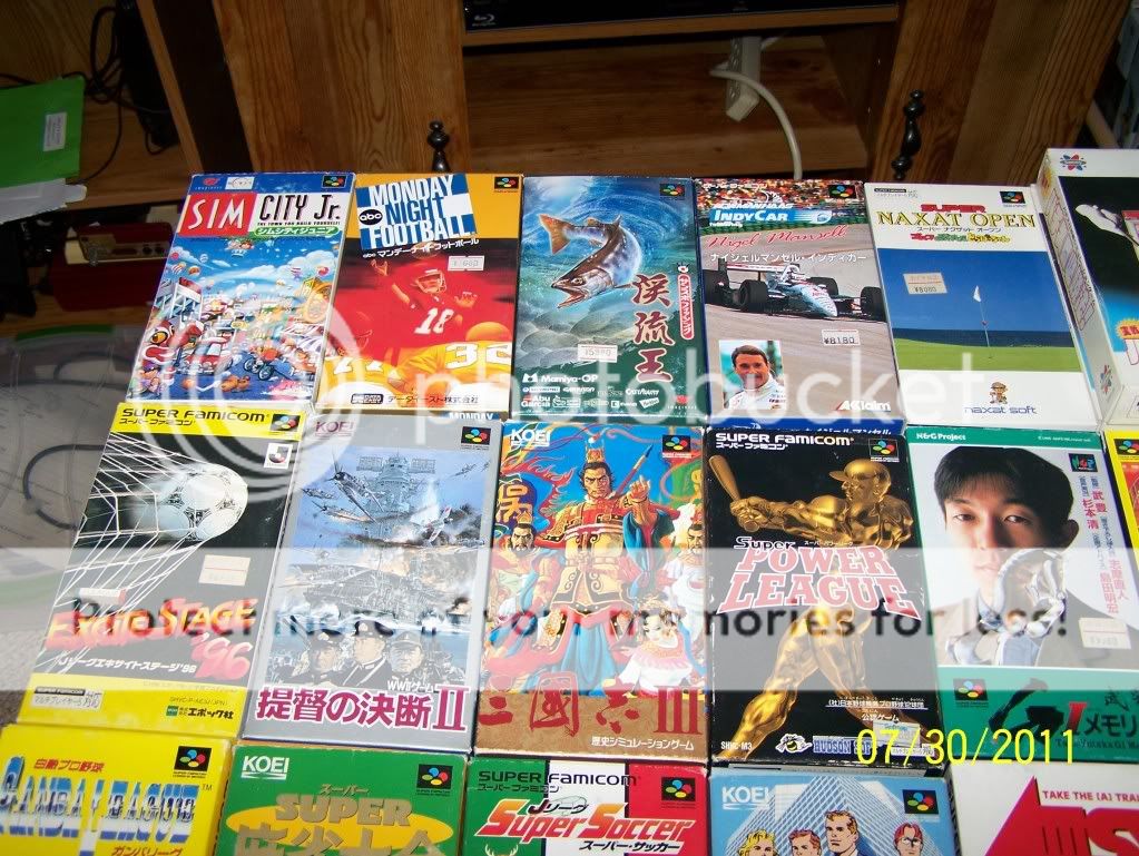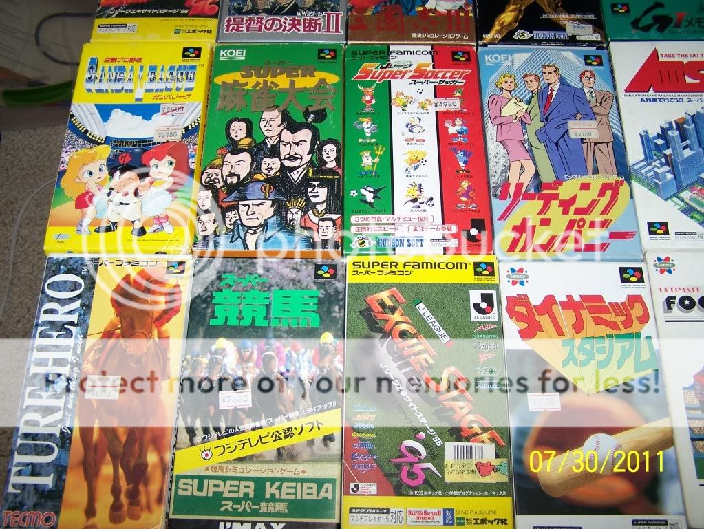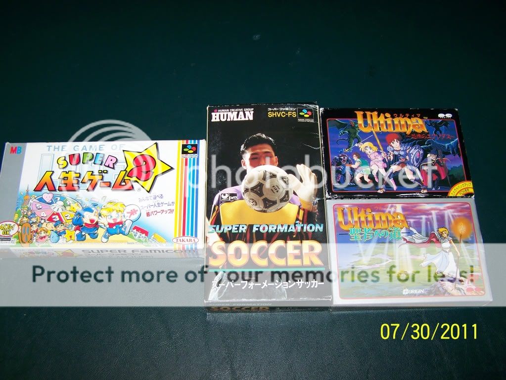 Hey everyone! Been a while since I have posted about our eBay chronicles. I just moved back from Florida because the job market is very hard down there. BUT WHILE I WAS AWAY my brother kept on eBay shopping. For a purchase of $40.00 he bought 36 SUPER FAMICOM games in their boxes all but one is complete with instructions. Some of the popular titles would include Sim City Jr., P.T.O. II, Romance The Three Kingdoms III, Super Baseball II and some others. This collection is awesome and definitely adds to the great import collection we have started. The Super Famicom as is the SNES is one of the best systems ever made (Sorry Sega Fans) the system especially in Japan had hundreds of titles and our new addition is only a small percentage of games to come. Hope you all enjoy please leave comments and here are some pictures with some descriptions. Also in another eBay purchase he bought two ULTIMA Famicom Games complete in Box!