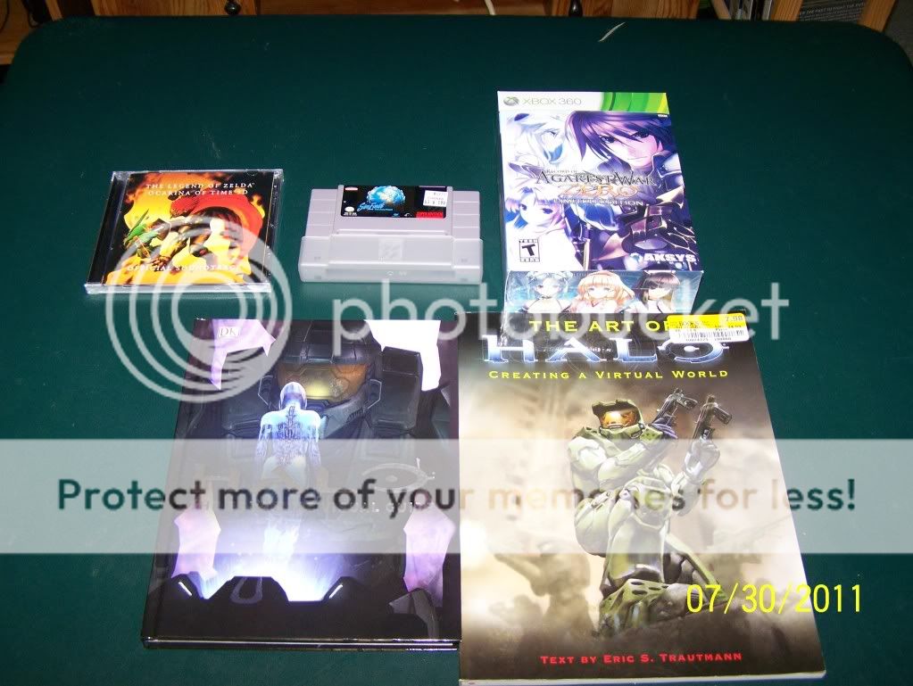 Hey everyone third post of the day! Been a while since I have done that (wait have I ever posted three, hmmm o well). My brother and I have done some shopping and we purchased a few cool items. The first one was SimEarth on SNES for $1.98 which is pretty cheap, the cartridge is in great condition no tears on the label and no markings. My brother has a ton of points in Club Nintendo SO to add to the collection of our Legend of Zelda items he bought the Legend of Zelda Ocarina of Time 3D Soundtrack, WHICH can only be purchased through CLUB NINTENDO! (You don't have points in the club GET SOME!!!) The CD is new never opened and NEVER will be opened. He also bought Records of Agarest War Zero Limited Edition (too add to our huge collection of Collector's, Limited, and Special Editions). Today we went to CD Tradepost in Bellevue, NE. We found a few nice items one was Atari VIDEO PINBALL complete in box!!! It was only $35.00! Then we also bought Alien Vs. Predator Extinction which is a pretty good game and can be quite costly but we bought it at $17.00. Also we purchased the Halo: The Essential Visual Guide from Borders (which is going out of business) for $13.00. He purchased the Art of Halo brand new from Half Price Books for $8.00 and it is selling new on Amazon for $45.00. So hope you all enjoyed this post and here are a few pictures. Also a few weeks back we purchased complete in box Atari 2600 Paddles in box for $4.00.