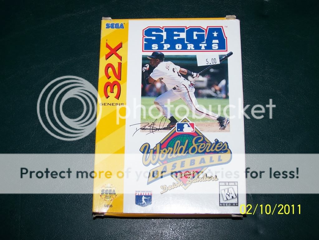 Here is the second of the eBay series tonight. I think I might of mentioned about my brother and I buying a lot of Sega 32x Games on eBay the other day. But maybe not. Well as I was on eBay about a week ago I saw this lot of games and what was on top probably the second most expensive game on the Sega 32x WORLD SERIES STARRING DEION SANDERS!!!! This game retails just cart in range from $40 to $60 i have seen and cart and manual for $70 and higher. Well we got this game and 4 others for $80.00!!! World Series is in excellent condition easily worth over $100.00. This game was very underrated and limited released when it came out to do the untimely death of the Sega 32x. A great system but bulky. The other games COMPLETE in box are Mortal Kombat II, Metal Head, Star Wars Arcade and NFL Quarterback Club. My brother and I are only missing a few of the 32x Cart games and CD Games like Night Trap. Well here are the picture any questions just ask!