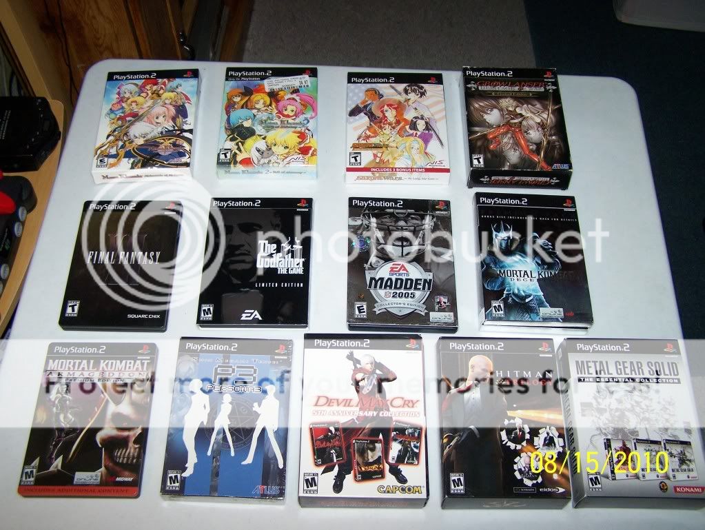 1. Mana Khemia 1: Alchemist of Al-Revis: Special Edition 2. Mana Khemia 2: Fall of Alchemy: Collector's Edition 3. Sakura Wars: So Long My Love - Collector's Edition 4. Growlanser: Heritate of War - Limited Edition 5. Final Fantasy XII - Collector's Edition 6. The Godfather - Limited Edition 7. Madden 2005 - Collector's Edition 8. Mortal Kombat: Deception - Premium Edition 9. Mortal Kombat: Armageddon - Premium Edition 10. Presona 3: Limited Release Edition (Taken off the shelves after release) 11. Devil May Cry: Trilogy Pack 12. Hitman Trilogy 13. Metal Gear Solid: The Essential Collection