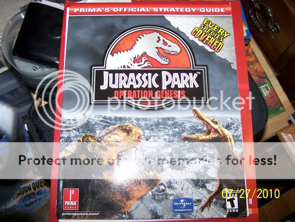 Sorry it's been a while since I have posted anything today there will be two different posts. This blog is about The Game Find that my brother and I had a while back. Jurassic Park: Operation Genesis is a rare game on the PS2 and XBOX unfortunately we only have the PS2 version right now. The game is going for $30 to over $100 on eBay. We found the game at CD Tradepost here in Council Bluffs, for $17.99 a great buy at that time, because the game was going for well over $80.00 at that time. We bought it about a 3 years ago. But two weeks ago we found the Strategy Guide which is also rare and hard to come by at local book store. I will have pictures of both items on this blog so you can enjoy the beauty of both. We bought the guide brand new for $10.00 and is selling new on amazon for $200.00!!! Both are great finds and are great additions to our collection. (For a description of the game use wikipedia or mobygames). FIRST PICTURE: The Game