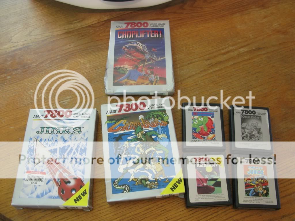 Here are the 7800 stuff. I've been trying to beef up my 7800 collection when I find good deals. It's not a beloved system, but I love 8-bit. Choplifter is NIB, although a little beat up. Other games here are Ballblazer, Food Fight, Tower Toppler, DK Jr., Crossbow CIB, and Jinks CIB.