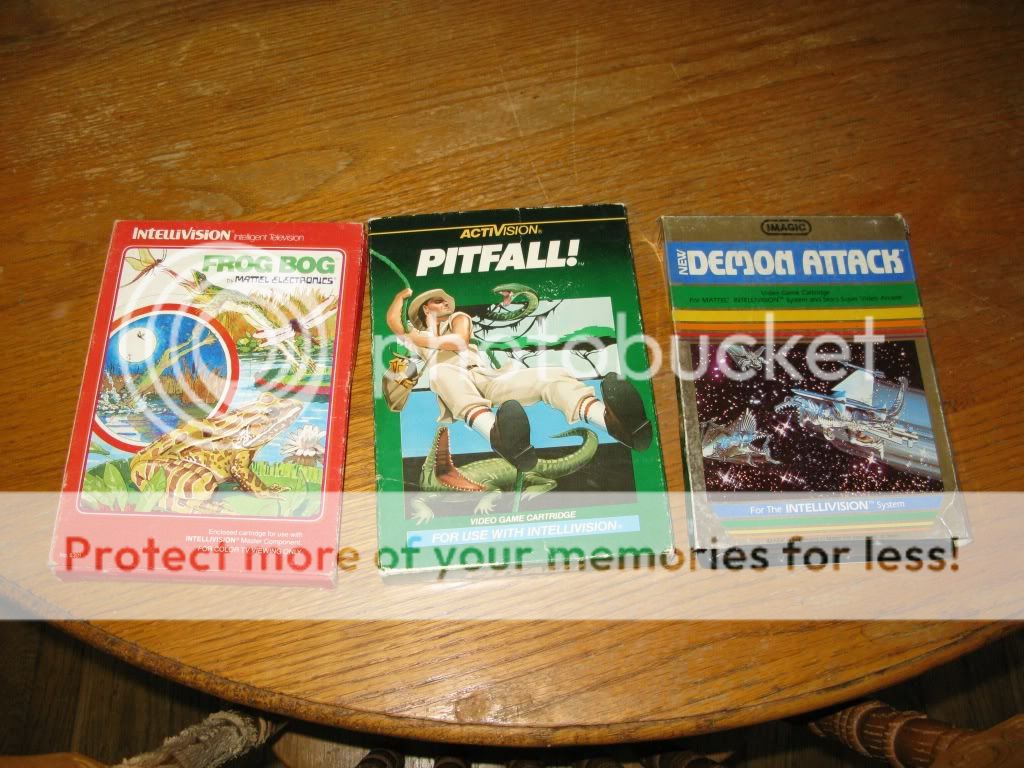 So here are the few Intellivision games I picked up. He had a lot more CIB, but I usually don't like to pay more than a buck for these. I just grabbed these because I like the games: Demon Attack, Pitfall!, and Frog Bog.