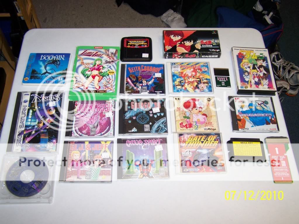 *Time Gal - Purchase Price $25.00, book value $25.00 So no ups there. *Everything else $45.00 BUT - Mega Key - $90.00 - Mirai Adapter - $100.00 - American Turbo Grafx and Duo Games Total - $85.00 -Japanese PC Engine and PC Total - $50.00 -Japanese Super Famicom Game - Ranma 1/2 - $30.00 (Boxed eBay price) -Mega Drive Sailor Moon - $100.00 -Bonk's Adventure TG-16 - $15.00 (unboxed eBay price) -Other Stuff I'm not going total out, mostly common.