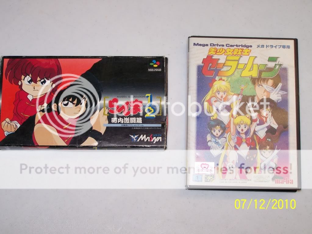 Description: Picture 8 - This is another Japanese find, the Super Famicom Game in box is Ranma 1/2 complete in box. The other is Sailor Moon a very very high priced Mega Drive game, sadly no instructions otherwise it would be work over $250.00 without manual $100.00!!!!