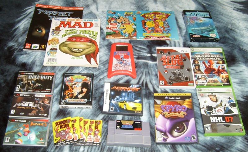 The Wii and 360 games came from my first trip to GameStop in about a year. Spyro, Asphalt Urban GT, and Prince of Persia were from Play n Trade. The rest were from eBay and were mostly add-ins from sellers' stores because I was grabbing games for others. I had to grab the Pac-Man 45's (small vinyl records, for the youngins reading this) and the DK cards. The Tomb Raider for N-Gage is just case and manual, if anyone need it.