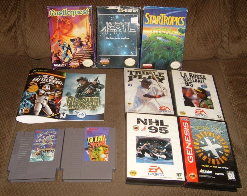 Hey everyone picked up a few more games today at CD Tradepost thanks to beardcore64 (Cody)!! 7 More NES titles down, Primal Rage CIB, Tomb Raider: Last Revelation and Star Wars: The Phantom Menace PS1 games. Then two packages came in the mail - NES Gold Medal Challenge '92 CIB so Minty! Then my package from Techwizard came from a far off magical place called Canada ;-) Both thanks to Cody and to Techwizard!