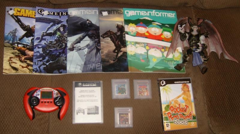 Can someone tell me who the figure is? It looked cool and will go next to Ozzy on my shelf. Cheap handheld, but it's Hockey for $0.75. Game Cube Start-Up Disc will be FS/FT, if anyone needs one. GB games - TMNT-Back From the Sewers, Dr Mario, Spider-Man2. And the Gizmondo game is an eBay purchase that took way too long to get here. No love for the Giz? okay then.