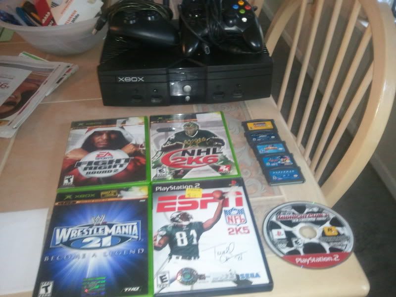 The rest of this stuff I got at my local thrift store. All of it for five dollars. I was really psyched because my XBOX ONE is on the fritz so it was nice to find a cheap replacement, even if there was some unsavory music on the hard drive. It also came with three good controllers, which I had a shortage of, and one of them was a hamburger, which I've actually never owned. There were a bunch of other games but they were all sports and they were all in really shitty condition so I just chucked them.