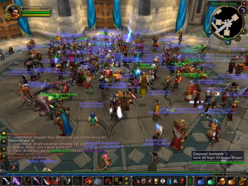 Last night someone kited a 62 elite dragon into the major human city Stormwind (Right as I was walking by of course) and it proceeded to massacre everyone until everyone in the city ran into the keep and stood next to the king. With like 200 people wailing on it while it fought the nearly indestructible king we finally took it down.