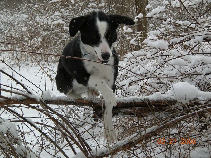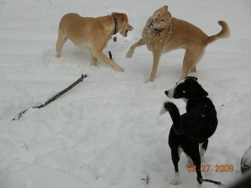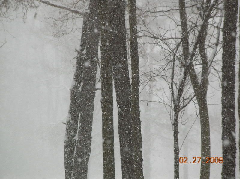 It was snowing pretty good yesterday and today, and the dogs love playing in it, so I took them out in the woods for a little run.