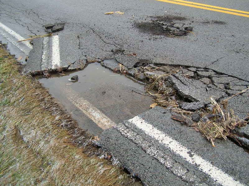 Looks like most roads in Michigan. Winter is hell on them here though I suspect a lot of it is shoddy craftmanship. There's quite a few on my way to work that would swallow my car whole if I wasn't paying attention.